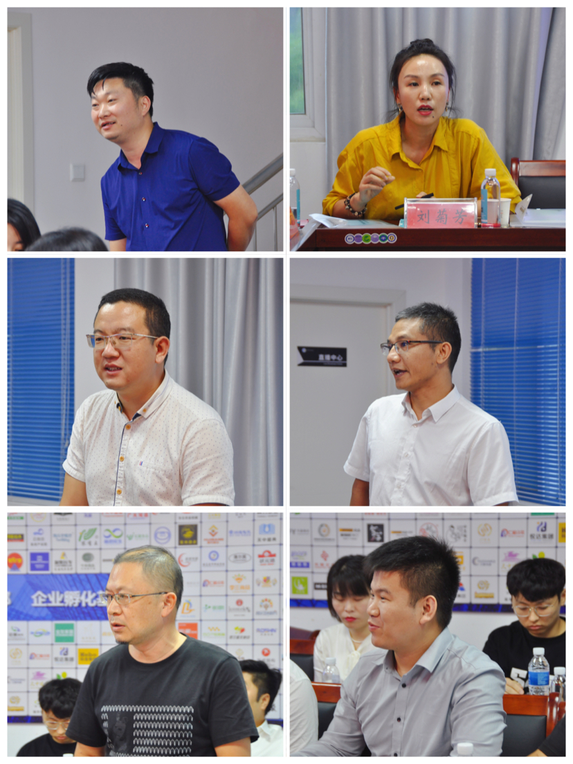 參觀結束后,大家在企業品牌產品展示中心二樓會議室進行了座談交流。狀元鴻粥餐飲連鎖王提、小豬配菜創始人趙子路、河南康康食品有限公司康葉茂、元化集團張珂嘉、企業品牌產品展示中心主任李鋒等分別結合各自專業領域和創業經歷,圍繞企業創新、技術創新、服務模式、市場應用等話題進行了精彩而又務實的分享。
